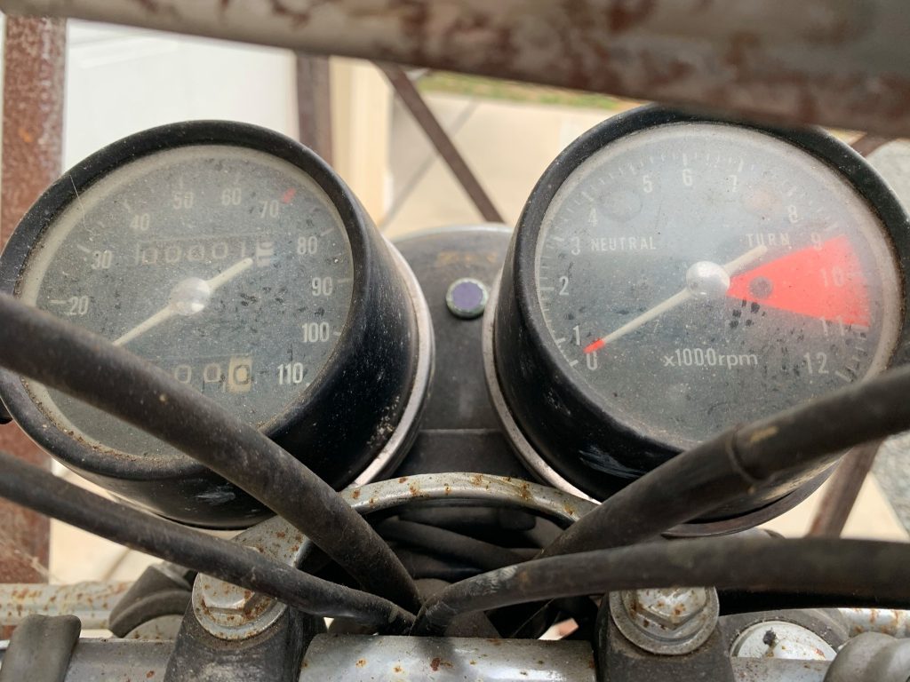 Now that we can look past the crate, the condition of the bike comes into sharper view. Time has not been kind to the machine, which was apparently stored in the open air at a New Orleans, Louisiana dealership followed by a short stint in New Jersey. The chrome looks as though it would clean up nicely, and the petrol tank is flawless inside – rare for a 46-year-old machine like this – but corrosion abounds and the overall appearance is not what one would hope for given the two total miles.