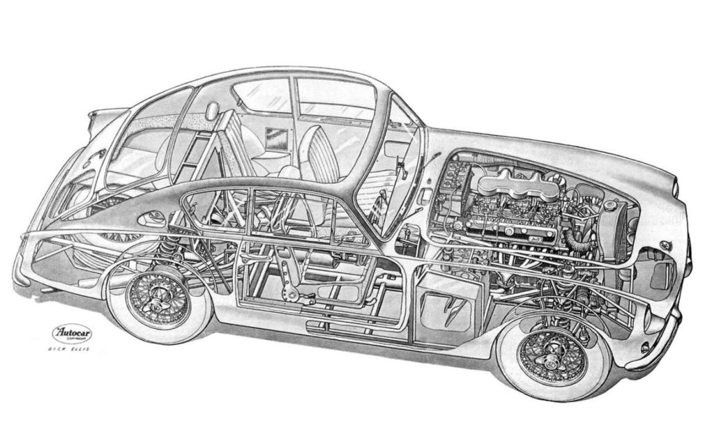 Straight away Turner hit a snag: the straight-six in the nose had to be moved forward to free up cabin space, but the transverse leaf suspension didn’t allow that, so he had to switch to a fresh suspension layout. This consisted of coil springs and double wishbones up front, with coil springs and semi-trailing single wishbones at the back.
