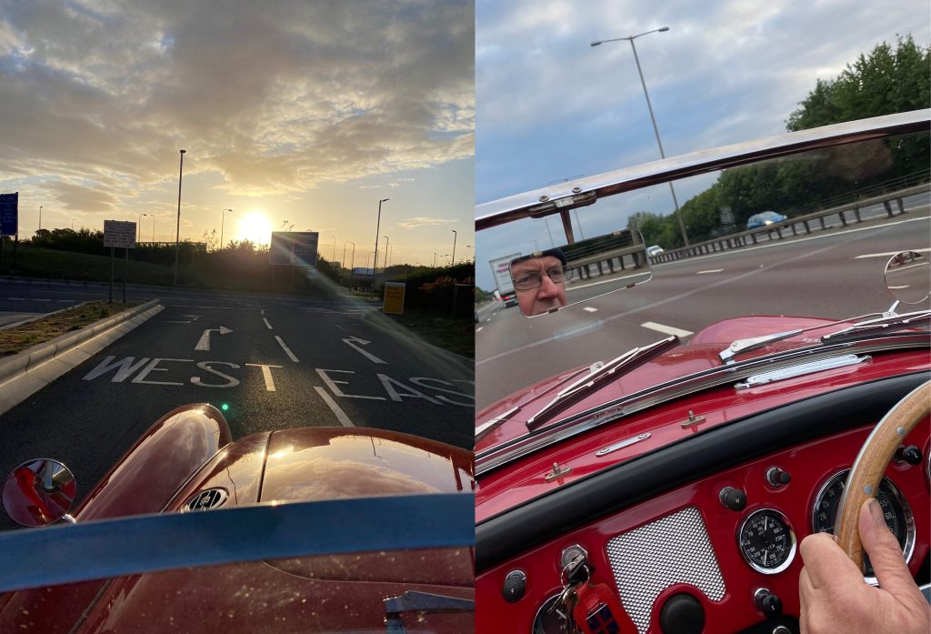 The date coincided with what would have been my father and I’s arrival at Everest Base Camp in Tibet, behind the wheel of the MGA. An epic expedition aborted – stay home, stay safe – we three weren’t at the top of the world, but we were together, we were healthy, and we were soaring across an estuary at the heady elevation of 213 feet. What about that sunrise? Well, it was a no-show but hey-ho, we were motoring! Even if we were on one of the UK’s most hated roads. Dwarfed by monster 12-wheelers, my low-slung sixties roadster held steadily. I was aware of, but unfazed by, the HGVs that thundered along. Happy in our highway comfort zone of around 56-60mph, we stayed in the slow lane, safely out of the way.