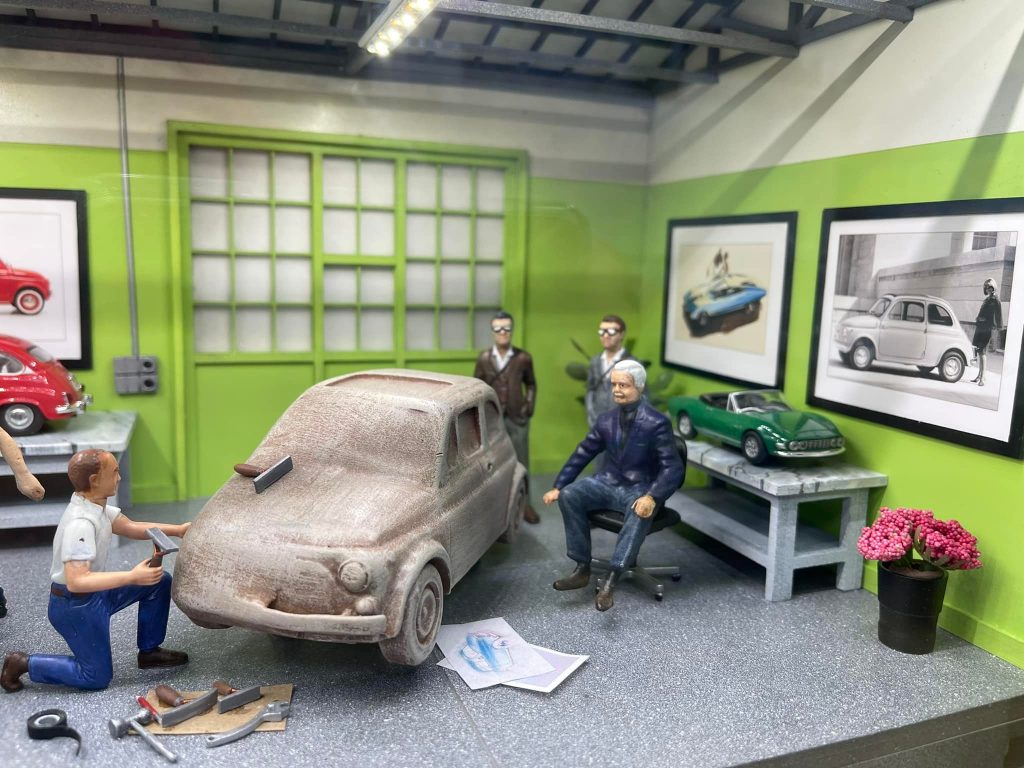 It’s not just the scale that’s astonishing, but the details too. Below the test track level Slot Mods has modelled a factory production line, complete with 3D-printed miniature Fiat 500s, and below that a museum-style arrangement with various Fiats from history, many positioned on rotating turntables. Offices, a furnace room and Lingotto’s internal ramps are also modelled, while the entire model is lit from within bringing even more life to the diorama.