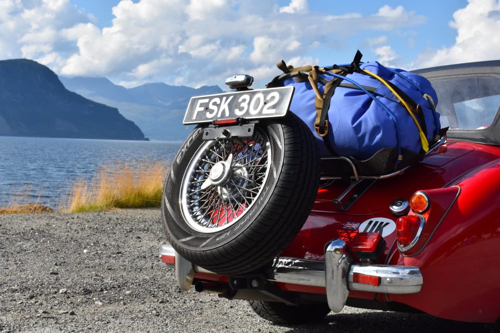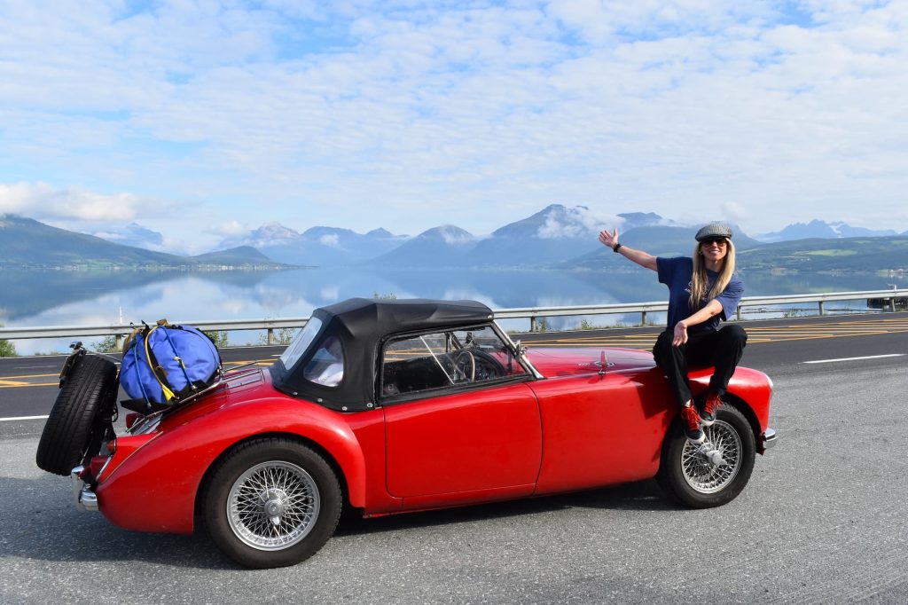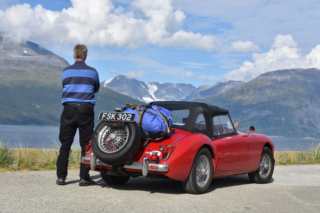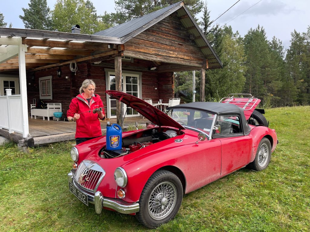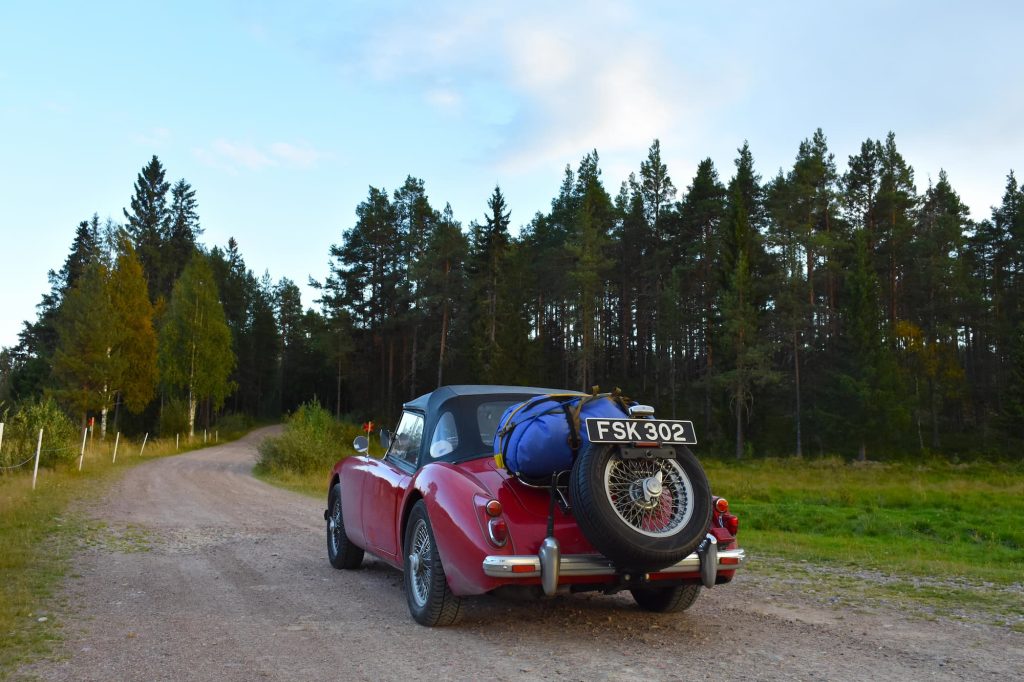 Epic landscapes deserve to be photographed, especially when they’re framing a super sexy chariot red, chrome-edged classic like mine. Apologies for the not so humble brag. To do so, I use multiple devices, including a camera, a GoPro and a phone, and have, on occasion, left one of them behind. It was on a remote forested road in Sweden that thanks to my forgetfulness my husband’s expensive camera was flung from the MGAs leather roof. I only realised my faux pas when I saw it in bits on the tarmac via the rear view. A discontinued model, the chance of a successful fix was slim, but dad was up for the detour to seek first aid.